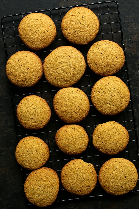 Dodatkowa uwaga: puder z rokitnika możesz zastąpić innym pudrem owocowym, ale też karobem albo kakao. Zamiast sproszkowanych składników możesz dodać również na przykład posiekane orzechy, miechunkę, rodzynki lub inne bakalie. Ciastka są banalne w przygotowaniu, robią się błyskawicznie i przyjmą dosłownie wszystko ;-)