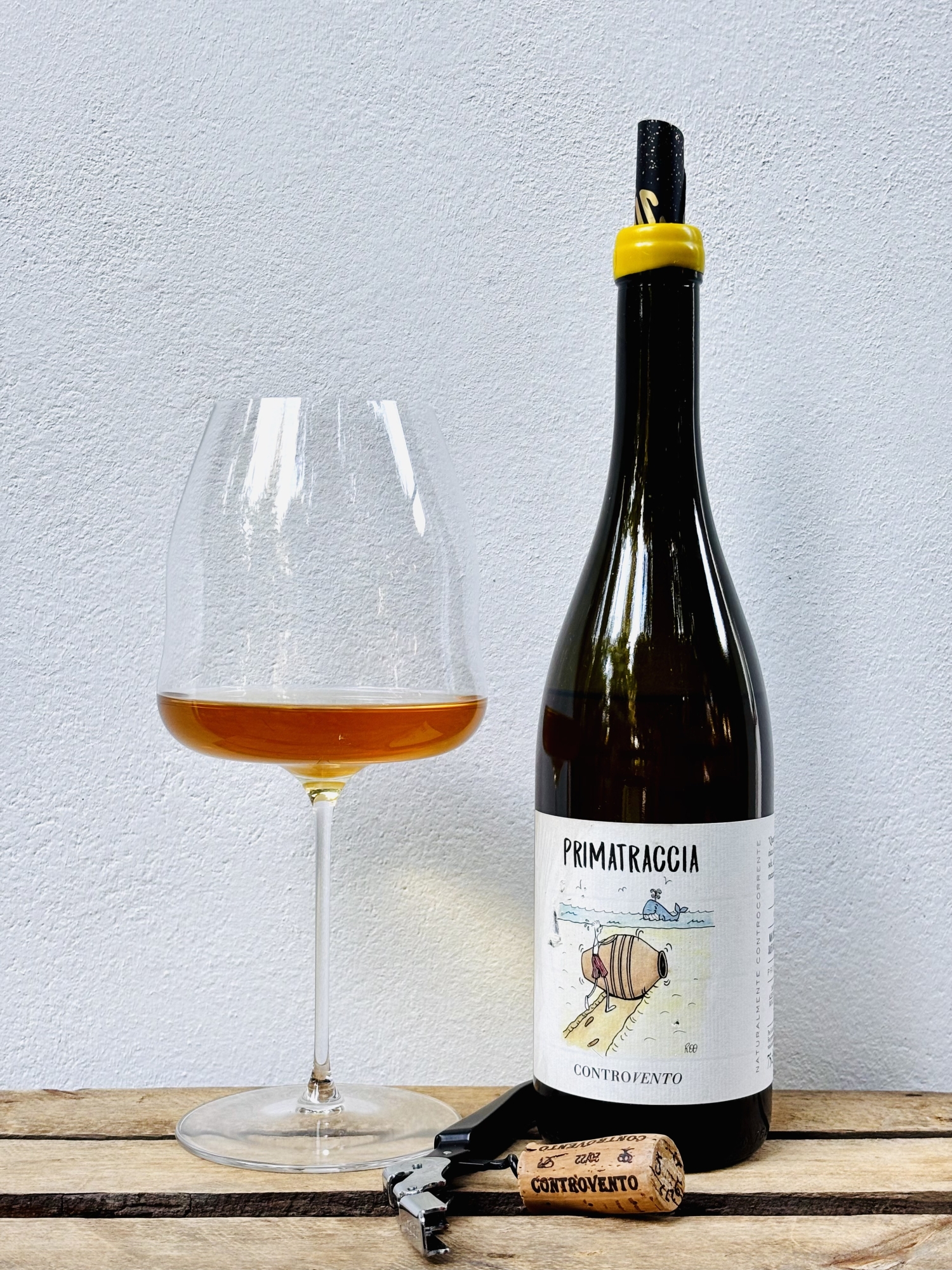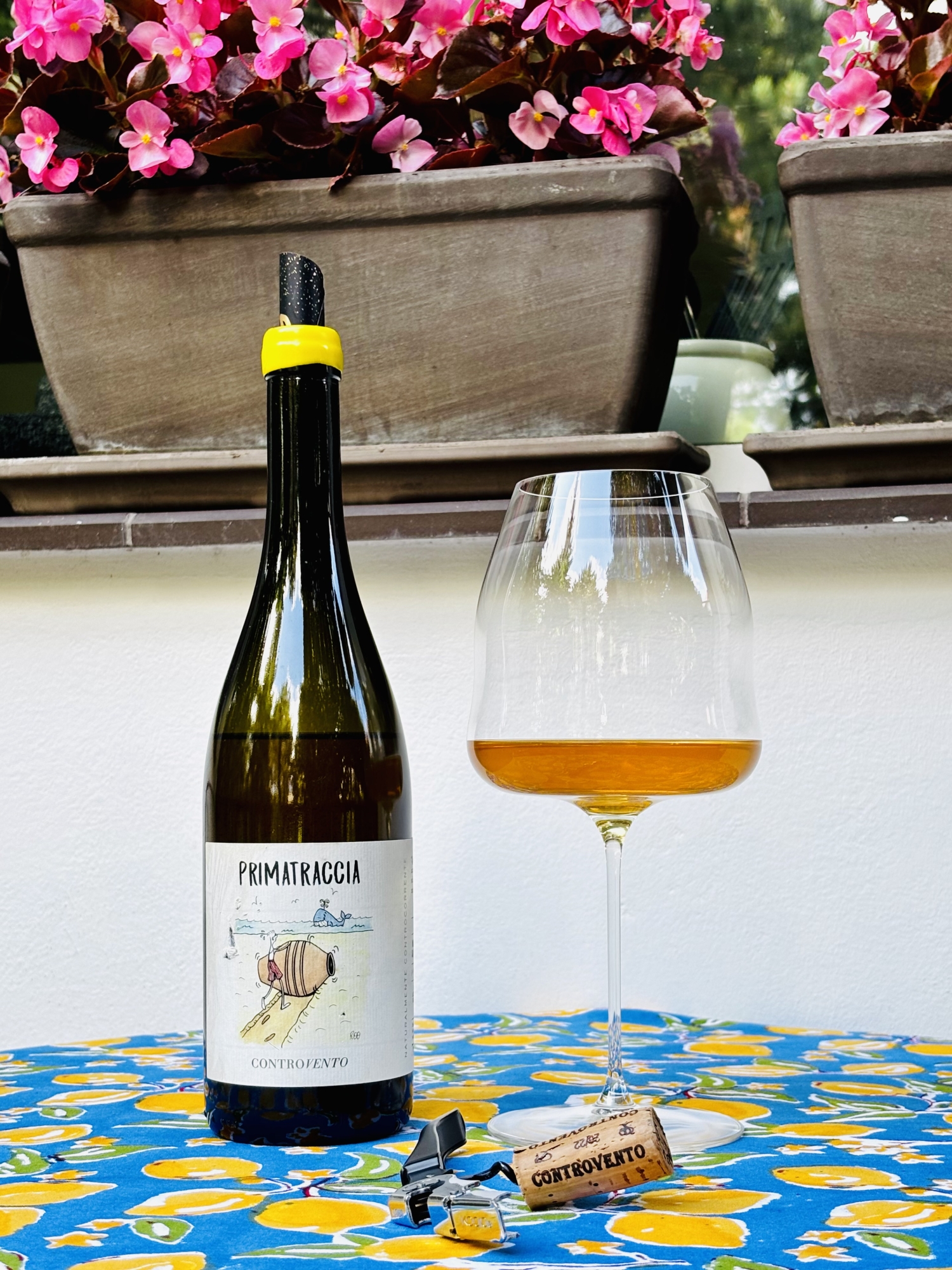Controvento Primatraccia to 100% Trebbiano z około 25-letnich winorośli, fermentowane na naturalnych drożdżach, macerowane przez tydzień na skórkach i długo leżakowane (około 7 miesięcy) w terakotowej amforze. Niefiltrowane, nieklarowane, bez dodatku siarki. Ma sporo osadu.