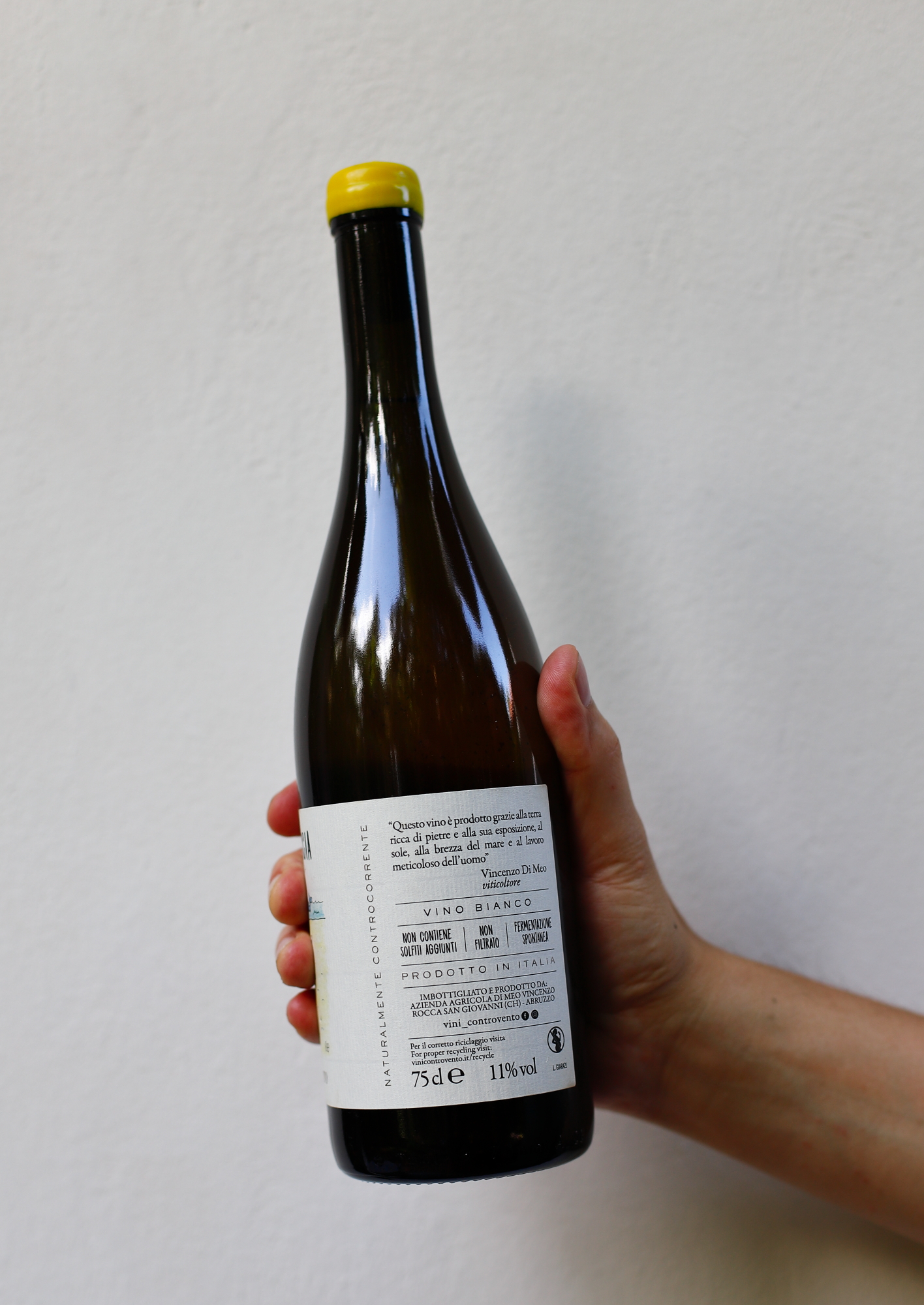 Vincenzo di Meo, znakomity mały producent win naturalnych z Abruzzo, uprawia 5 hektarów winnic na nadmorskich zboczach Rocca San Giovanni (prowincja Chieti). Jego ojciec w roku 1978 kupił tu kilka działek położonych dosłownie nad brzegiem Adriatyku (nie dalej niż półtora kilometra od wybrzeża) z widokiem na Costa dei Trabocchi, tj. na najpiękniejszy fragment wybrzeża Abruzji. Winorośl rośnie na mieszance wapienia, margla i piaskowca, a bliskość morza nadaje gronom lekko słonej nuty, która jest jednym z wyróżników win Controvento. Uprawiane przez Vincenzo szczepy to głównie Montepulciano i Trebbiano Abruzzese, a także Fiano, Passerina Malvasia i Cabernet Sauvignon.