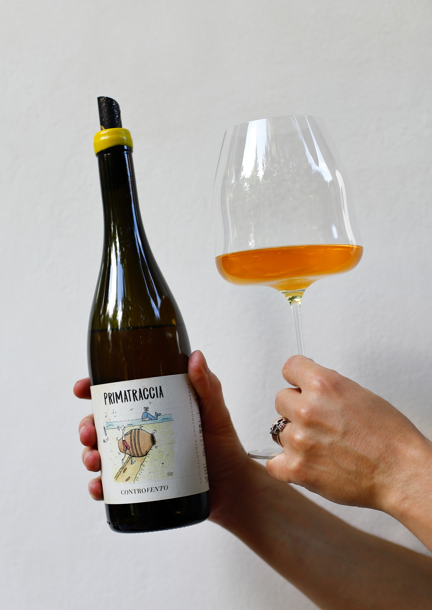 Primatraccia zachwyca bursztynowym kolorem, wielowymiarowym aromatem, wyrazistym charakterem, głębią, soczystością i niezwykłą pijalnością. Wino jest wyraźnie pełniejsze niż super świeży i leciutki Moby Dick (również produkowany z Trebbiano), przyjemnie wytrawne, lekko ziemiste. W aromacie i smaku znajdujemy tu nuty brzoskwini, moreli, mandarynki, skórki z cytryny i oregano. Słoneczne, soczyste owoce z delikatną ziołową goryczką w tle i słonym posmakiem w końcówce. Pełna równowaga między świeżością a złożonością. Bardzo fajna pomarańcza do picia sauté, którą docenią nawet pomarańczowi sceptycy.