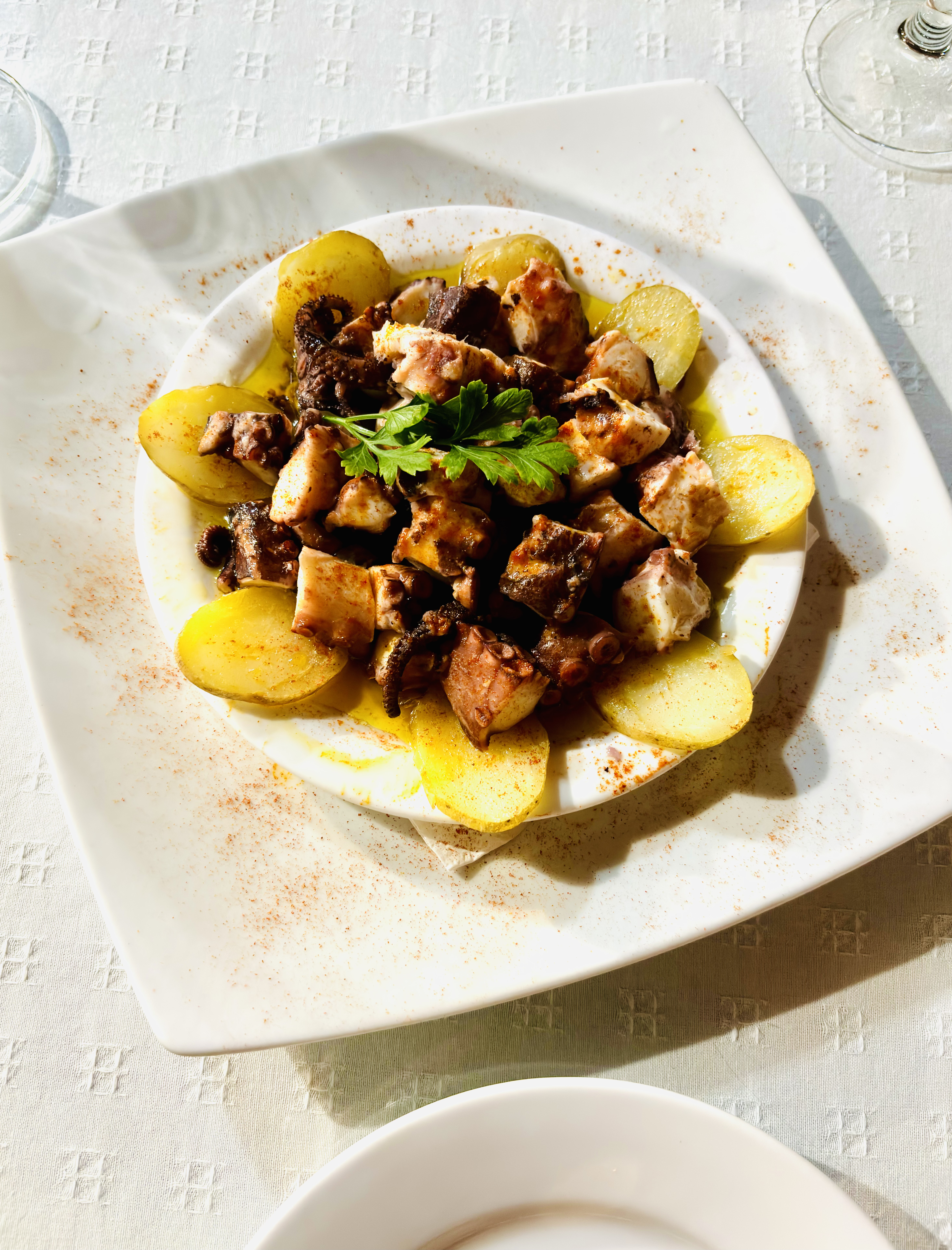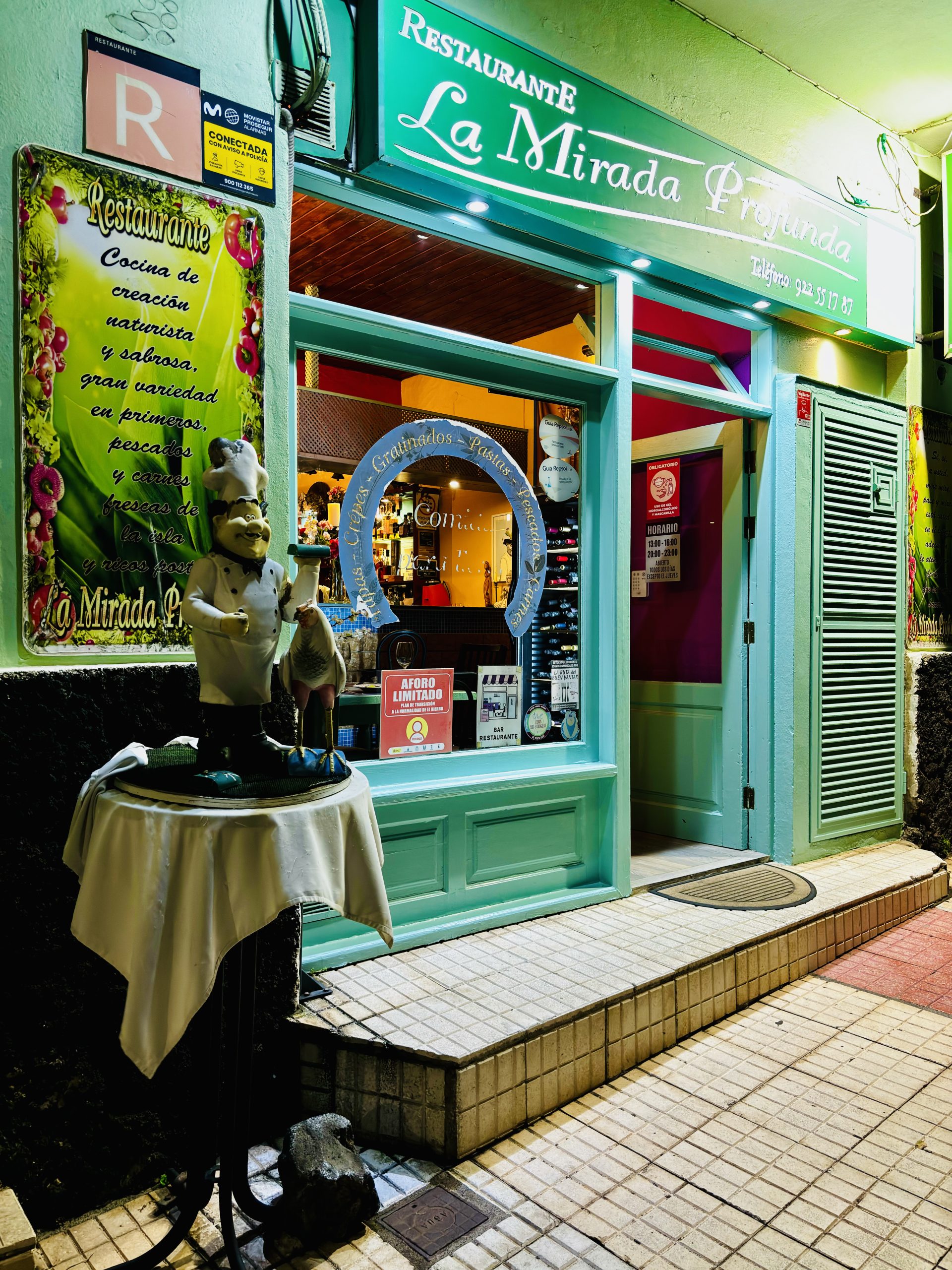 La Mirada Profunda to piękne odkrycie, do którego pewnie by nie doszło, gdyby nie to, że kilka świetnych restauracyjnych adresów poleciła nam Natalia, od której wynajęliśmy dom w Guarazoca. Zawsze uśmiechnięty staruszek Antonio, chef i właściciel w jednym, korzysta z warzyw z własnej farmy i robi najlepsze cochinillo! Wiem, bo zjadłem. I jeszcze ta ośmiornica jak ze snów! La Mirada Profunda to ukryty klejnot Valverde. Restauracja z zewnątrz wygląda niepozornie, gdyby nie rekomendacja lokalsa, pewnie jeszcze długo nie zwrócilibyśmy na nią uwagi. Nie ma tu karty dań, a zamiast tego Antonio opowiada o potrawach, które serwuje danego dnia. Zamawiając nie znamy również cen, ale kto przejmowałby się takimi drobiazgami na najbardziej magicznej spośród kanaryjskich wysepek? Na pewno nie my 🙂 Doskonała kolacja w świetnej atmosferze.