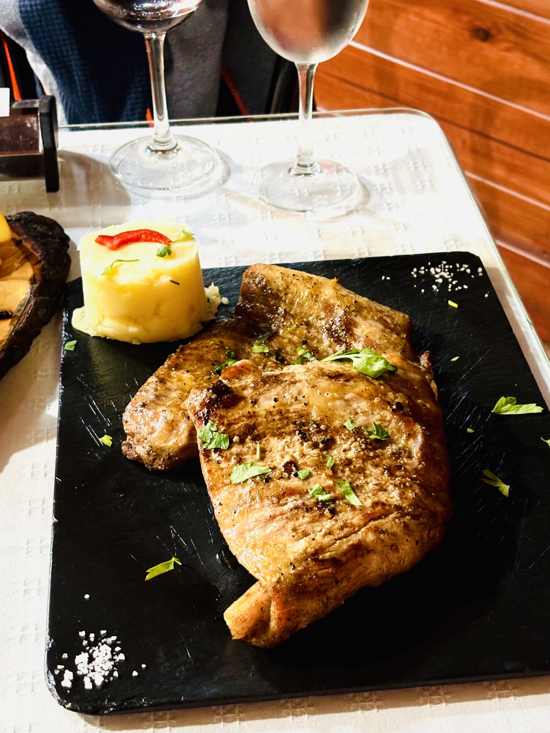 Restaurante La Pasada ma trzy ogromne zalety. Po pierwsze, znajduje się w gminie Guarazoca, czyli tam, gdzie za każdym razem wynajmujemy domy na El Hierro (już trzykrotnie), więc z chatki mamy do niej ultra blisko. Po drugie, nie przyjmuje rezerwacji, dzięki czemu jest idealnym wyborem wtedy, gdy trudno nam oszacować, jak późno wrócimy ze szlaku. Wybieramy tę restaurację na dni, w które nie sposób zaplanować kolacji w innych lokalach na wyspie. Po trzecie, jest na wskroś tradycyjna, rodzinna i swojska – można tu przyjść prosto z 25-kilometrowej trasy, w sportowych ciuchach i traperkach utytłanych żółtym pyłem, z plecakiem i czesanym wiatrem chochołem na głowie, a obsługa i tak powita nas z szerokim uśmiechem i da najlepszy wolny stolik. La Pasada słynie z mięsa, ale w karcie znajdzie się również coś z ryb i owoców morza, a nawet sałatki. Jedliśmy tu już chyba trzykrotnie i za każdym razem jest bez pudła. Pyszne, proste jedzenie ze świeżych składników i obsługa tak serdeczna, że aż nie chce się wychodzić.