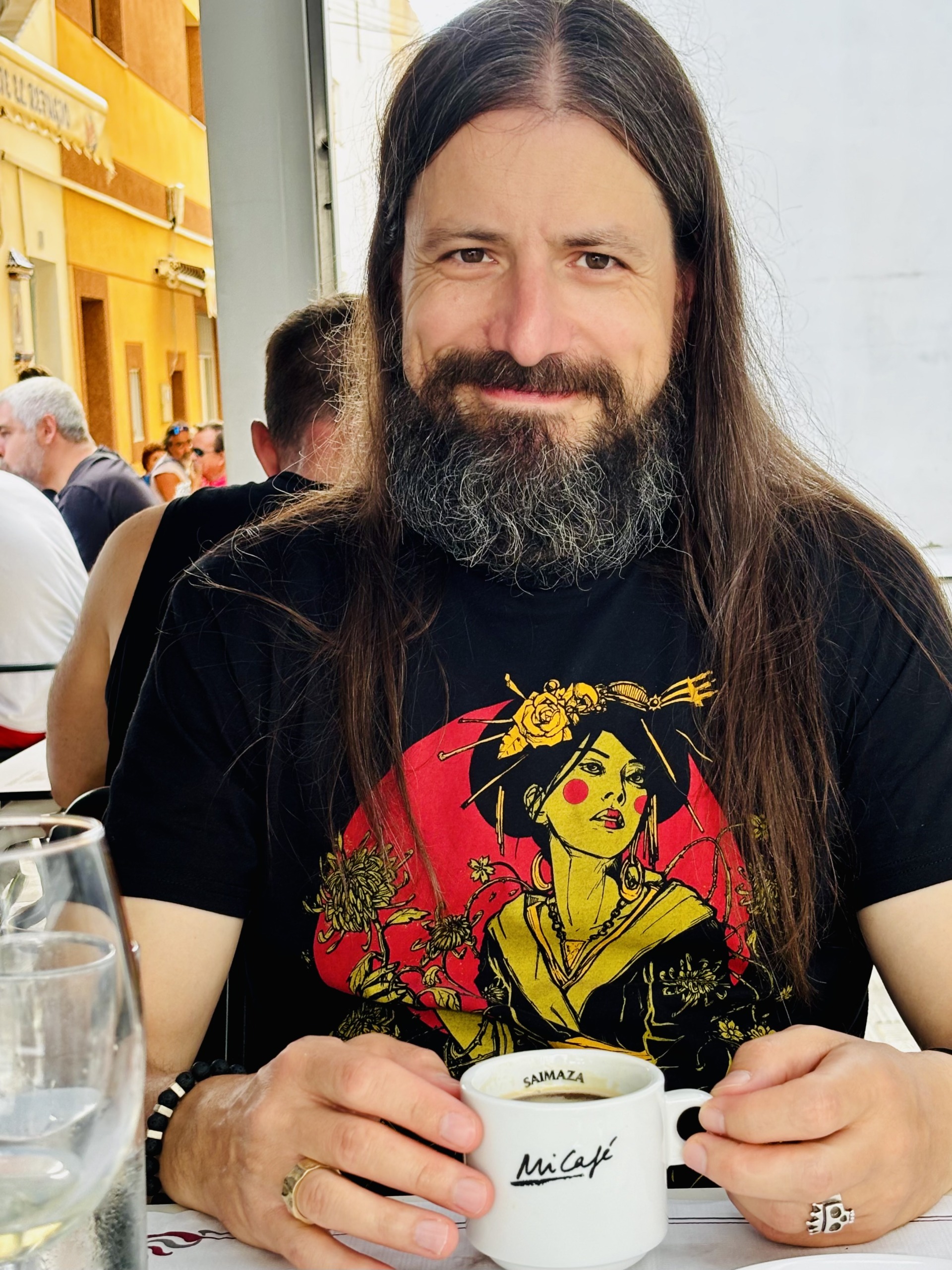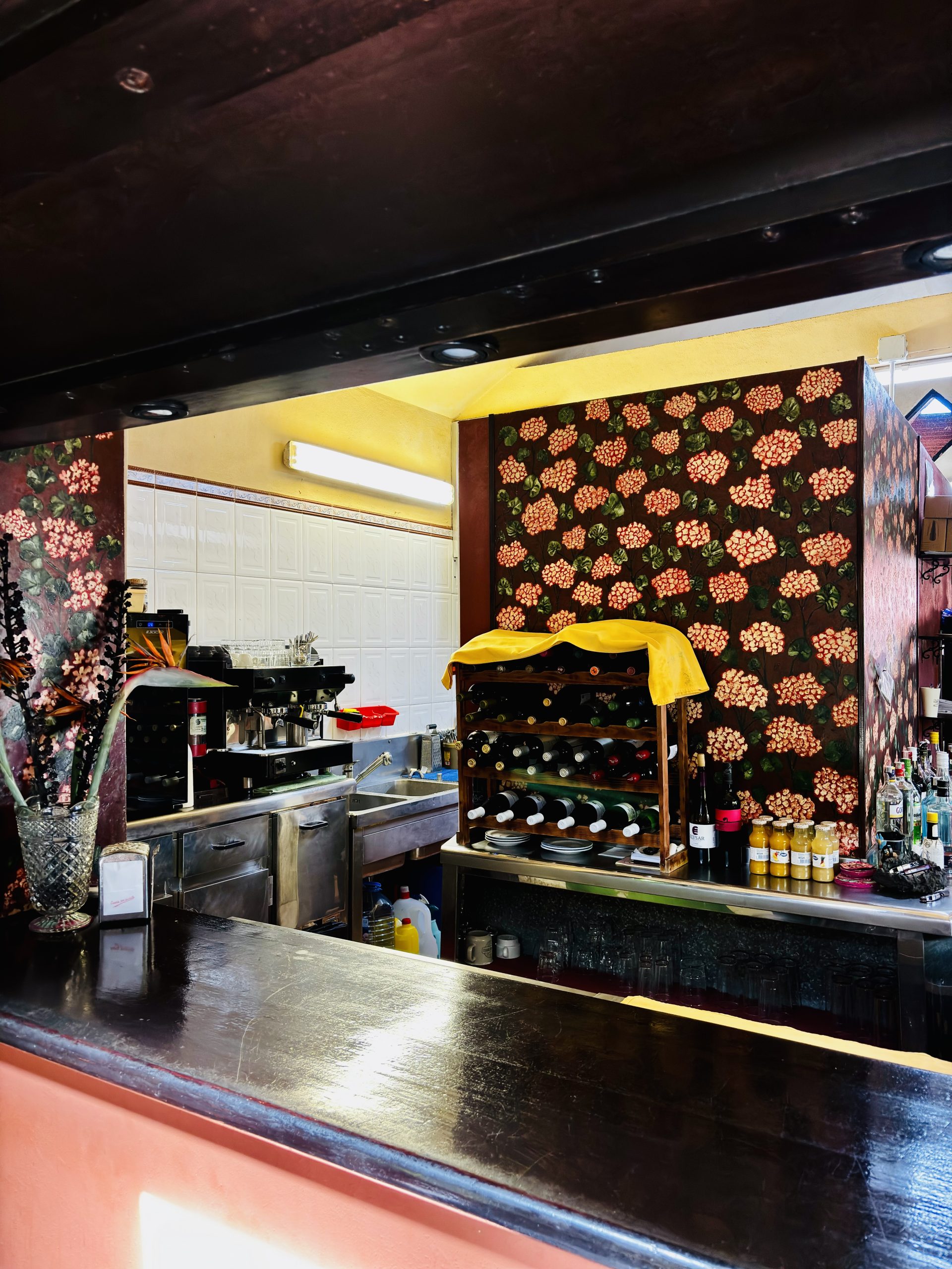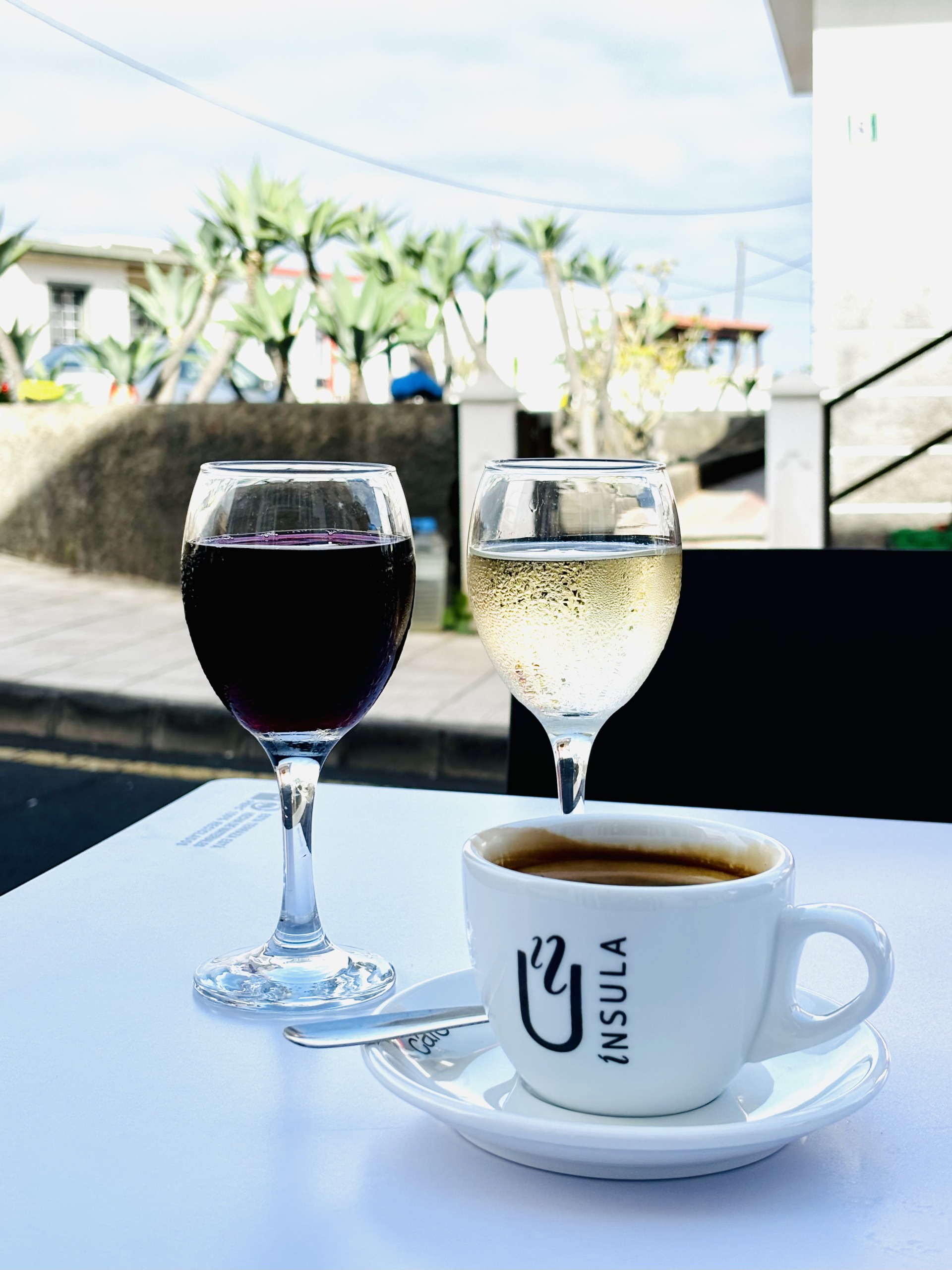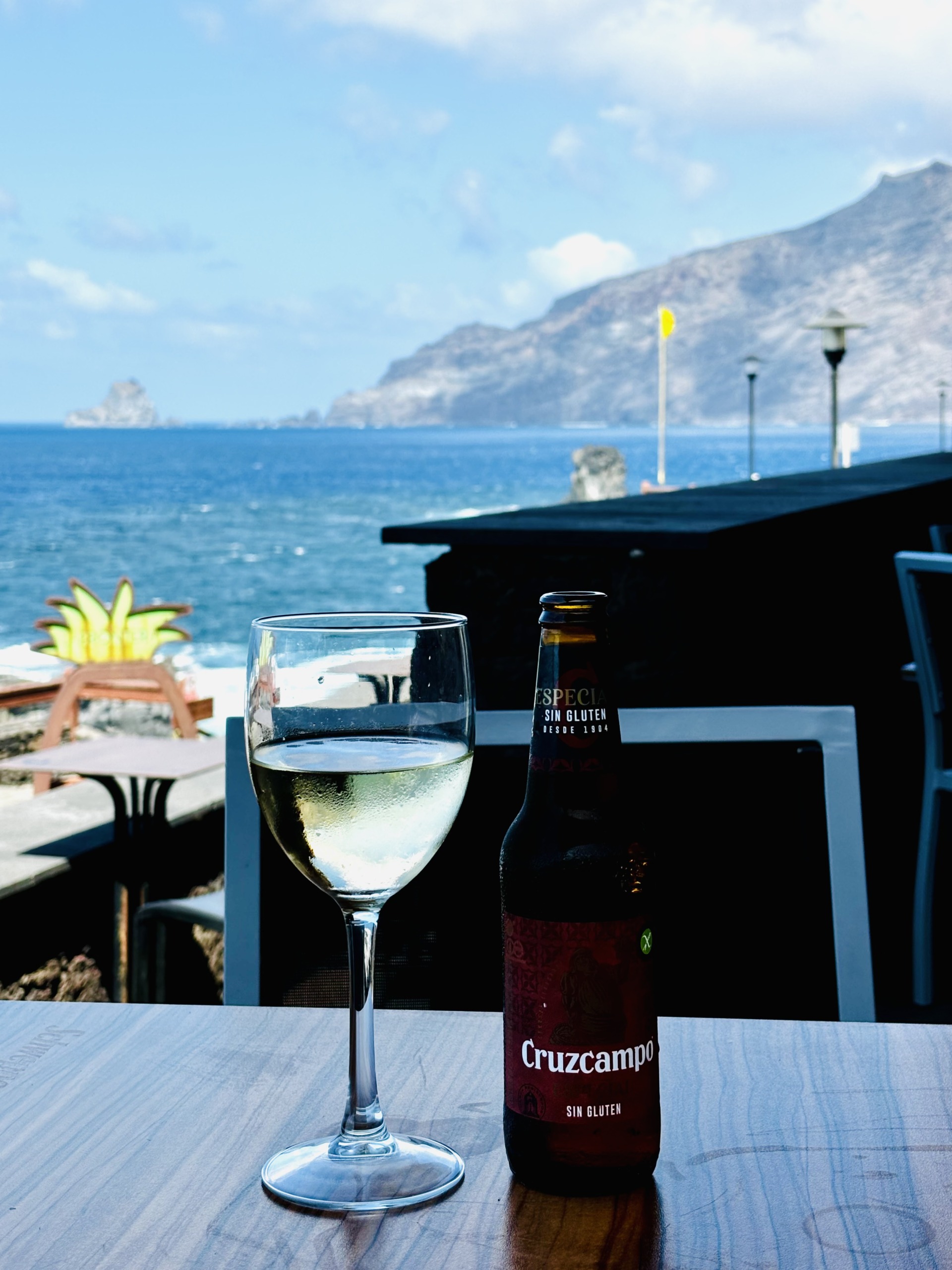W nadmorskiej mieścinie Tamaduste, poza nieustraszonymi kotami spragnionymi nowych znajomości i kilkoma uliczkami z domkami po obu stronach, niewiele jest, więc mieliśmy wybór – odjechać albo usiąść na chwilę i wsłuchać się w szum fal. Wybraliśmy to drugie. Bar Bimbache skusił nas nazwą, a poczęstował winem o smaku octu i kawą o smaku smoły. By nie narażać się sympatycznemu człowiekowi za ladą, pod pozorem zdjęć kieliszki z winem przemieściły się w kierunku donic z roślinami, a ich zawartość wróciła skąd przyszła – do ziemi. Kawa dała się wypić, choć bez przyjemności.