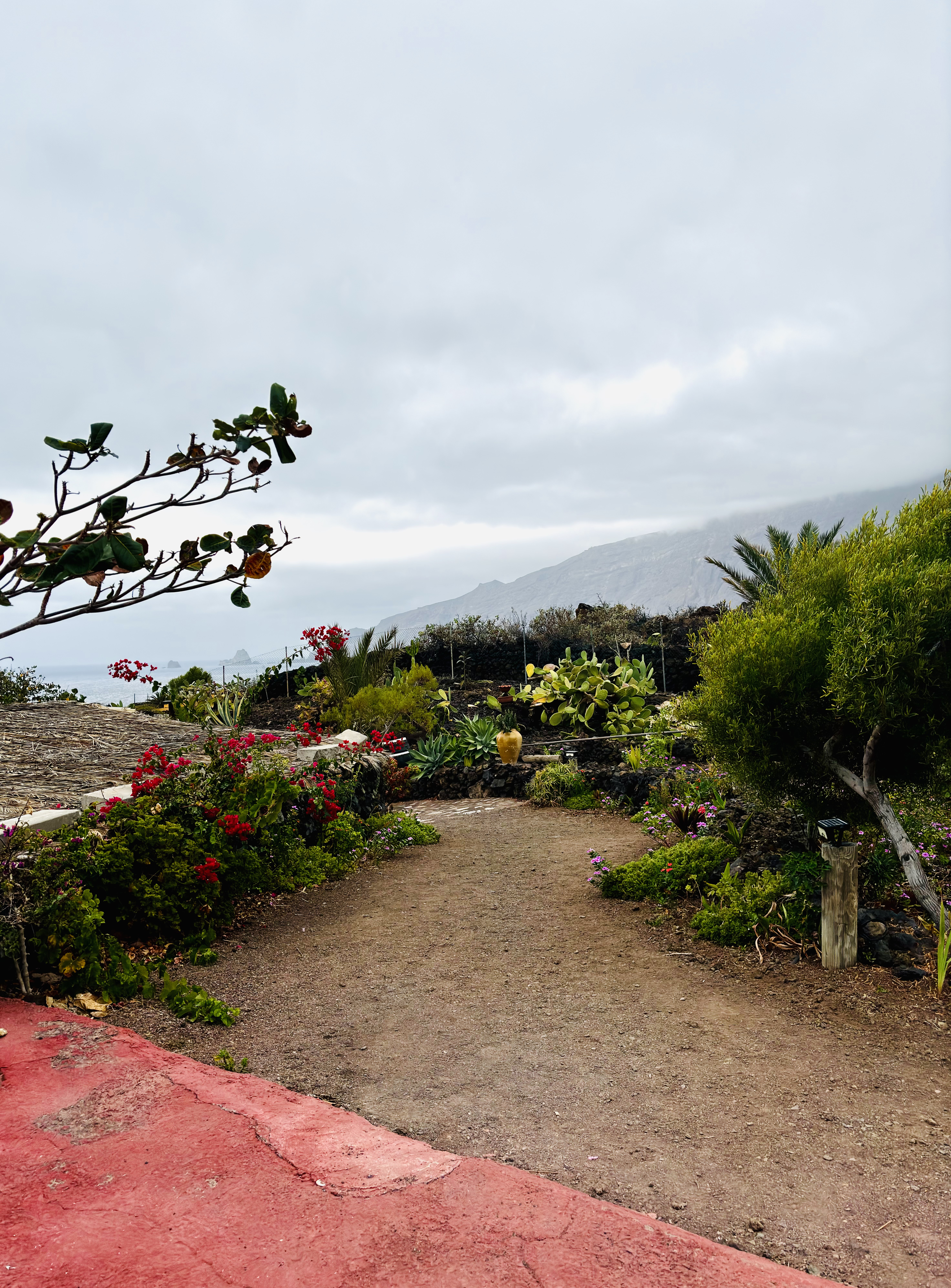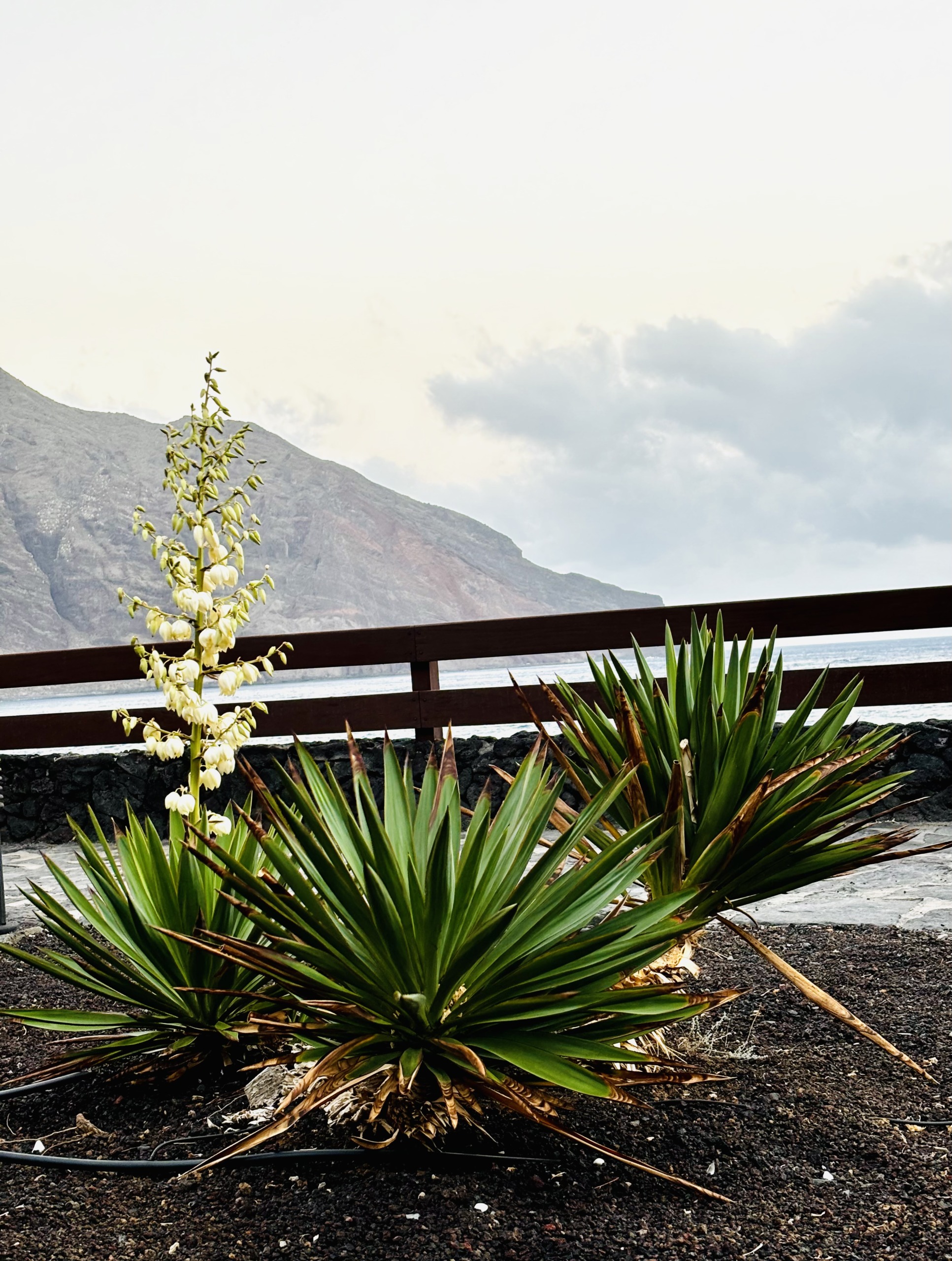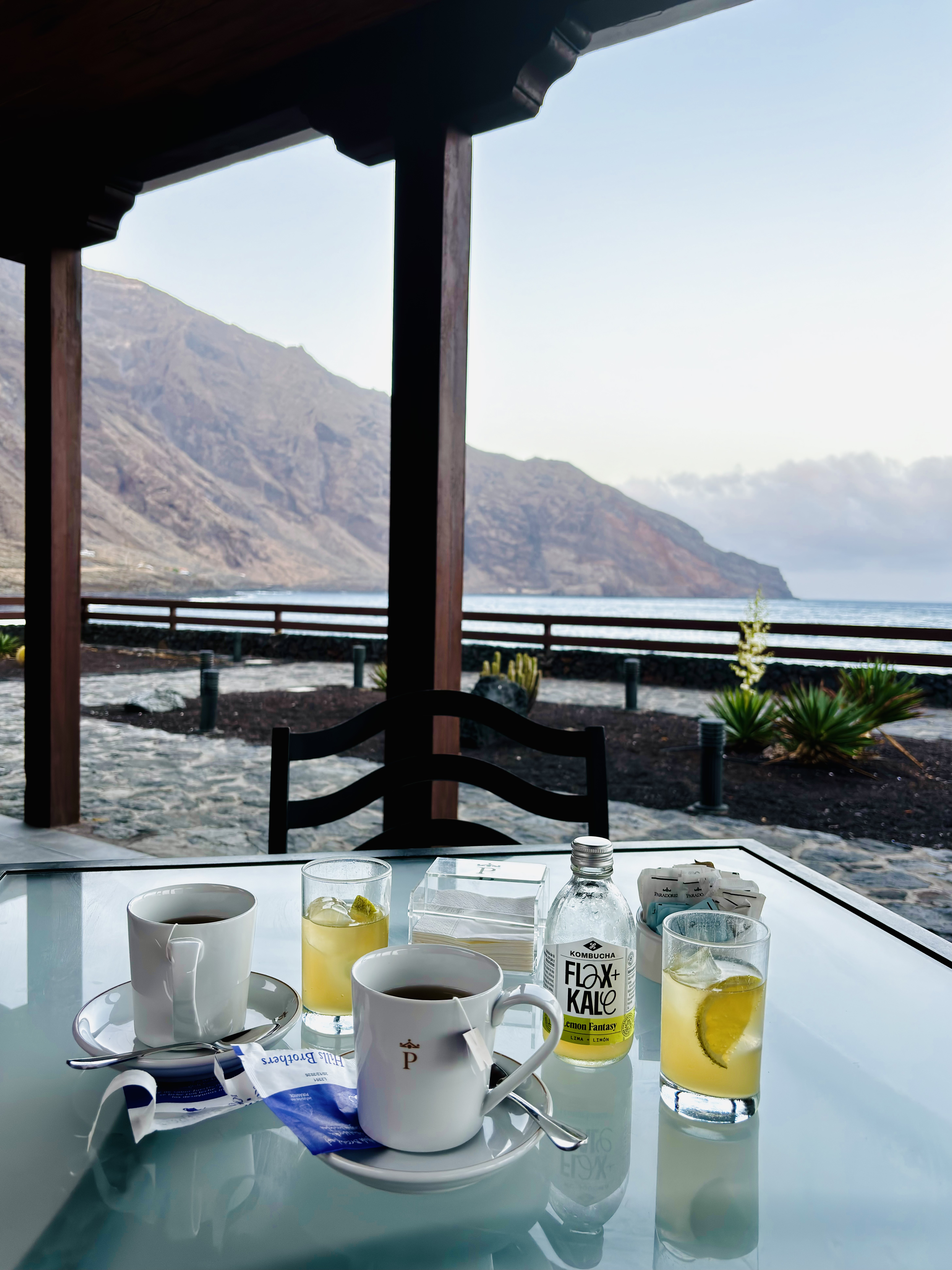Parador de El Hierro należy do sieci hoteli Paradores de España, a w hotelu działa restauracja, której nie nadano żadnej chwytliwej nazwy, funkcjonuje więc jako Restaurante del Parador de El Hierro. Nieduży hotel w niskiej zabudowie zgrabnie wkomponowano w nadbrzeżną przestrzeń pod klifem Las Puntas, dzięki czemu budynek praktycznie wcale nie rzuca się w oczy. Mieści się w nim nieco ponad 50 pokoi, a sam hotel jest pewnie dobrym wyborem dla tych, którzy nieszczególnie chcą bliżej zaprzyjaźniać się z El Hierro. Kto woli zamieszkać w hotelu, zamiast wynająć fajny tradycyjny dom od lokalsa, ten zapewne będzie zadowolony. My zajrzeliśmy tu z innej przyczyny – na kolację. Przyjechaliśmy wcześniej, więc najpierw posiedzieliśmy przez chwilę na tarasie przy herbacie i fajnej wytrawnej kombuchy, a później przenieśliśmy się do hotelowej restauracji. Największym plusem tego miejsca jest obsługa – restauracyjnie profesjonalna, niezwykle uprzejma i niesamowicie zaangażowana. A jedzenie? No cóż. To prawdopodobnie jedyne miejsce na El Hierro, gdzie zamówisz ośmiornicę, a na stół trafi talerz w stylu polskim – z ledwie jedną macką. Z kolei gulasz z warzyw okraszony został tak tłustym sosem, że Gośka nie była w stanie go zjeść; podzieliliśmy się jedną porcją na pół. Na koniec – powodowani chyba tylko urlopowym brakiem rozsądku – zamówiliśmy jeszcze, z tzw. ciekawości, sernik baskijski. Ultra kremowy, bardzo tłusty, pyszny, choć jego “baskijskość” była mniej więcej taka, jak serników baskijskich podawanych w polskich kawiarniach czy restauracjach – w najlepszym razie umiarkowana. Tak czy owak, tak wielka porcja sernika spokojnie wystarczyłaby jedna dla dwóch osób… Lokalizacja super, miejsce bardzo fajne, hotel ładny (szczególnie, jeśli zestawić go z wystrzeloną w niebo zabudową hotelową Teneryfy czy Gran Canarii), widok z tarasu na malowniczą okolicę warty zobaczenia, ale… nieporównanie więcej satysfakcji dostarcza dotarcie tu piechotą z Isora i powrót przez Las Puntas z powrotem do Isora. Wtedy hotel tylko mijamy po drodze, a w zamian doświadczamy uroków jednego z najpiękniejszych szlaków trekkingowych na wyspie. Jest dość wyczerpujący, ale zostaje w pamięci na długo. A ta kolacja była po prostu dobra, nic więcej.