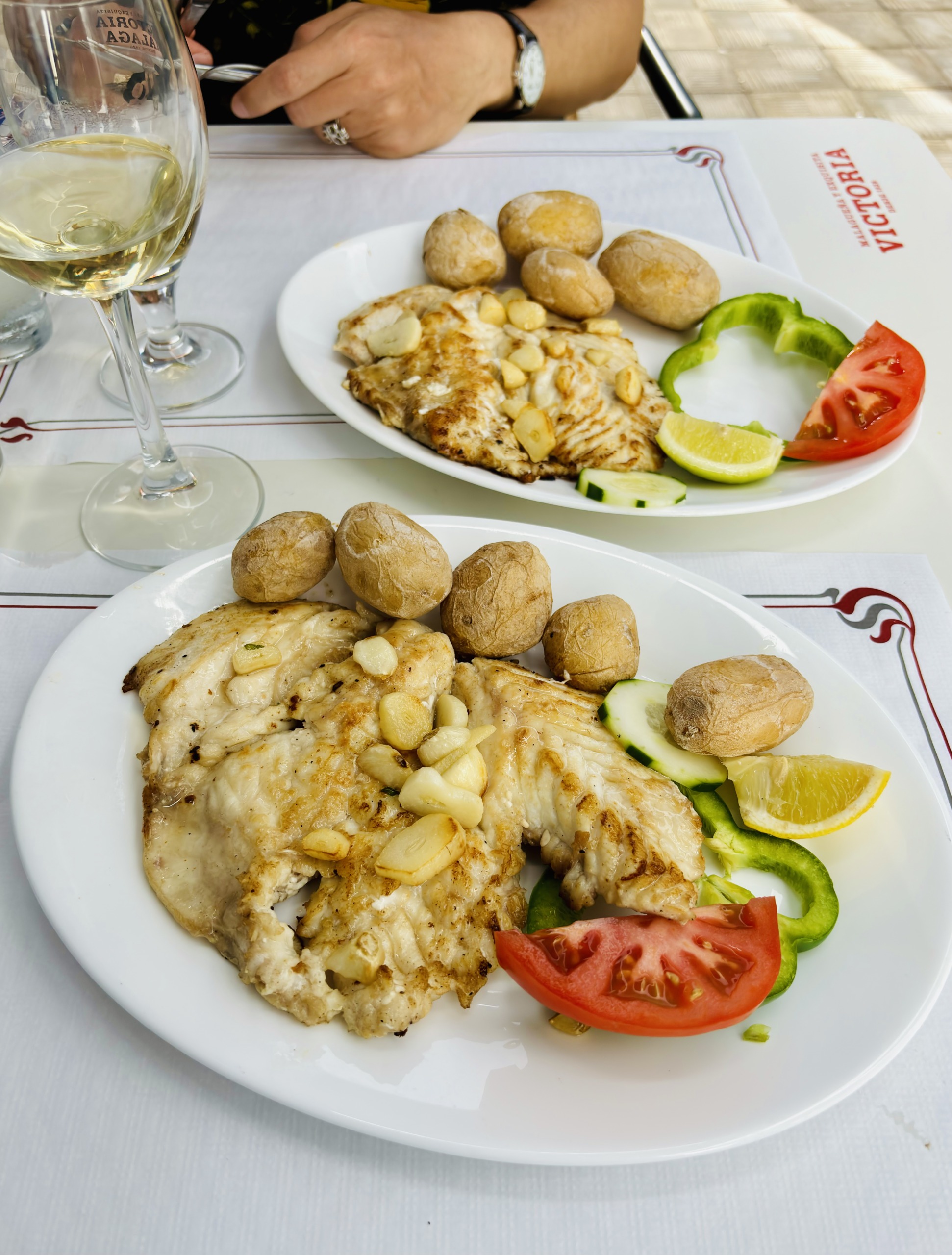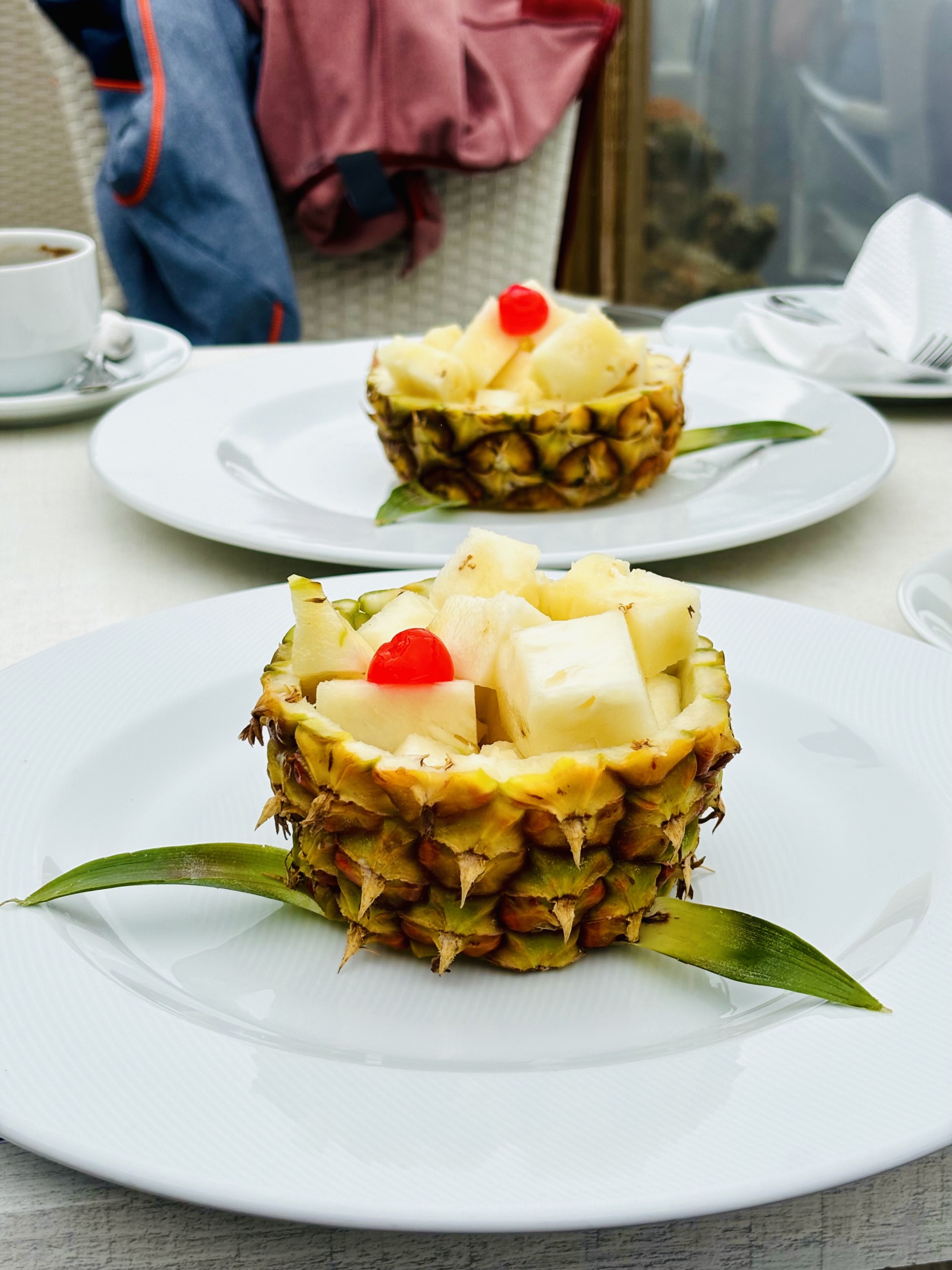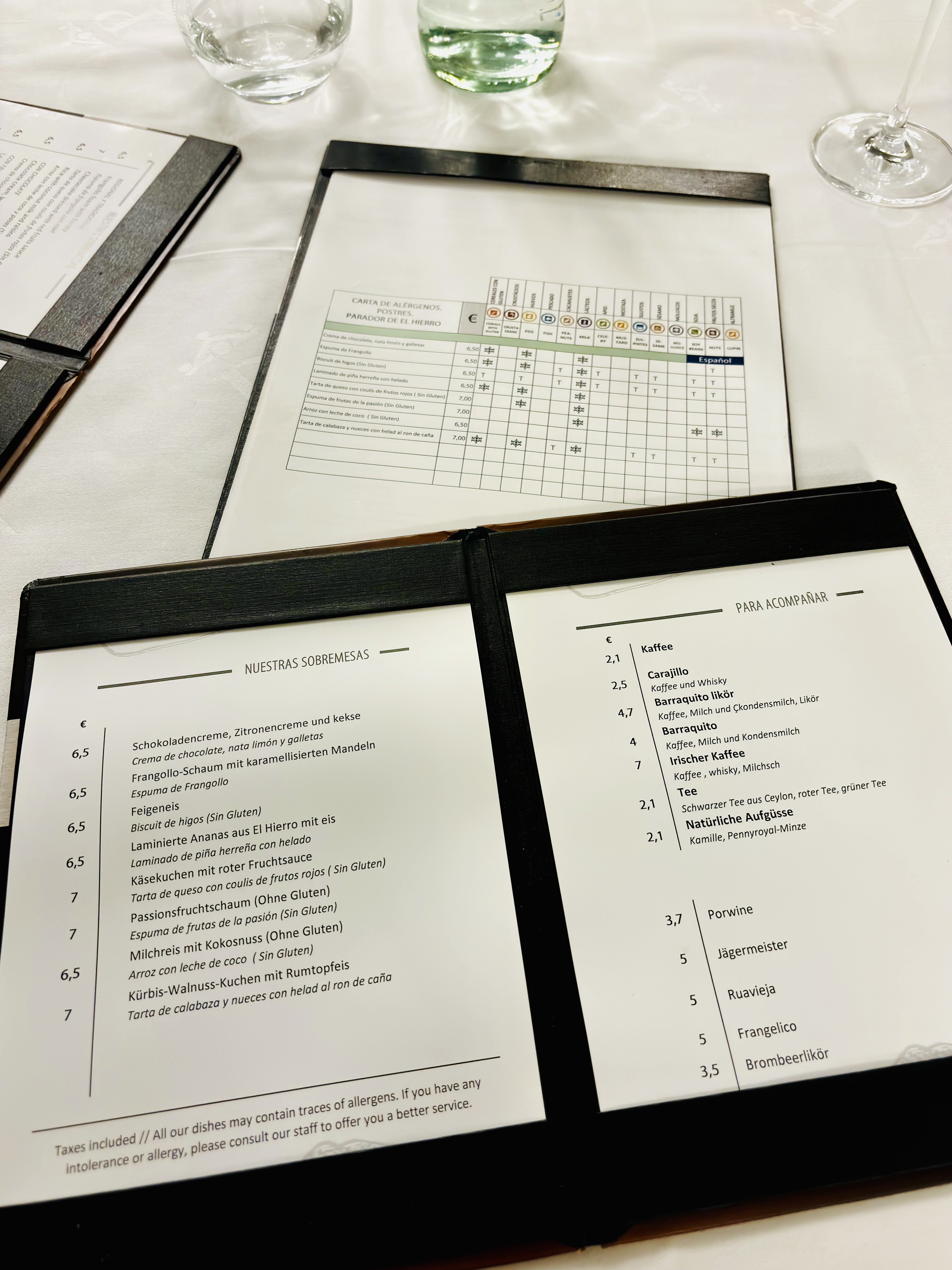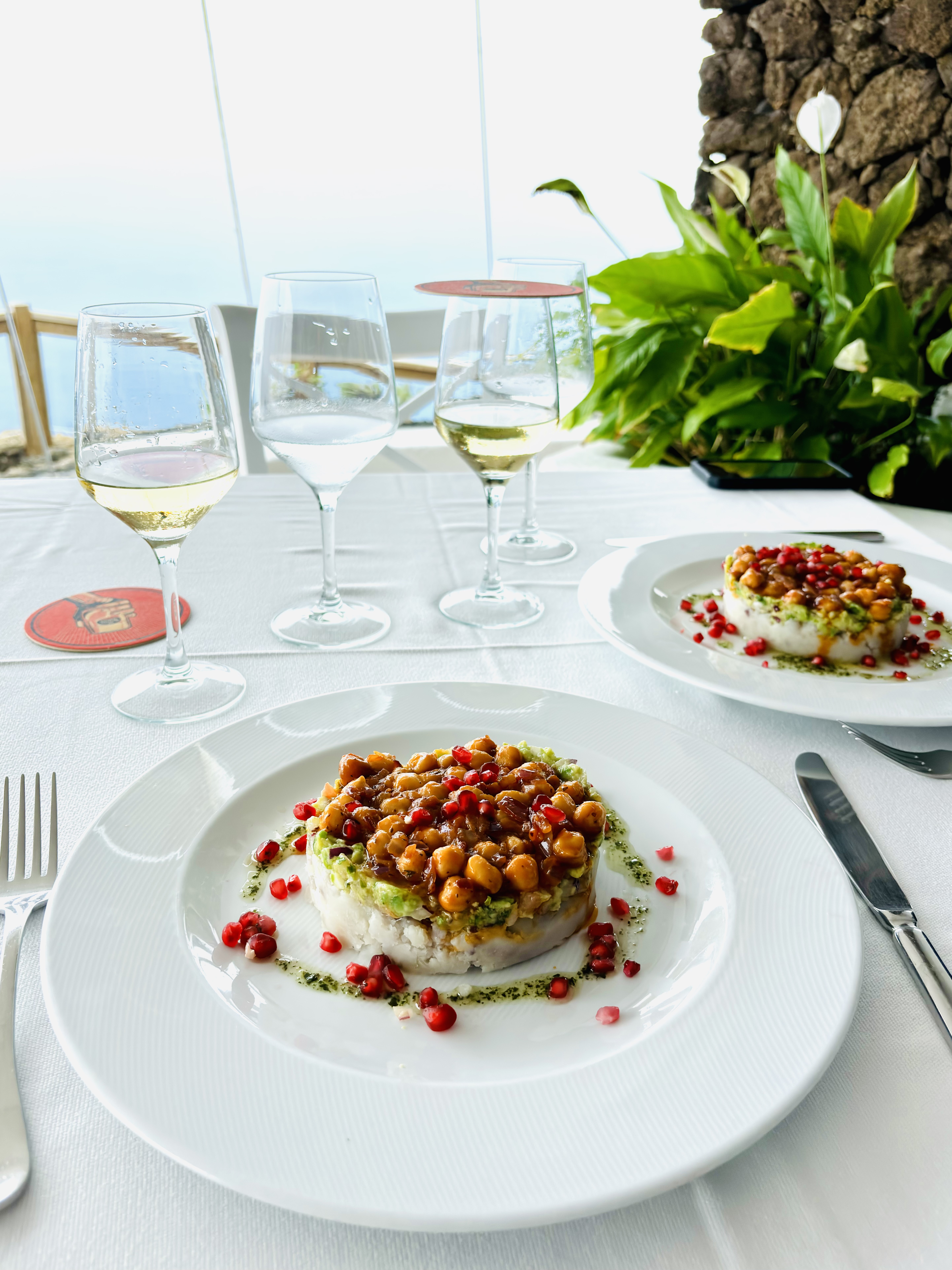 O restauracji przy punkcie widokowym Mirador de La Peña, zaprojektowanym przez César Manrique’a, więcej przeczytasz w tym wpisie. To drugi paśnik de luxe, położony na wyspie najbliżej naszej wakacyjnej chatki w Guarazoca, dlatego jemy tu dość często. W luźniejszy poranek fajnie jest przyjechać do Miradora na kawę z widokiem na ocean, a wieczorem – na wino, nawet bez regularnej kolacji, choć kolacja również jest więcej niż wskazana. Nasze ulubione przeboje Mirador de la Peña to, między innymi, carpaccio z tuńczyka, znakomita zupa jajeczna caldo de huevo, boniatos rellenos con garbanzos y granada, gulasz z królika, duży półmisek grillowanych sezonowych warzyw, zestaw serów z El Hierro (z queso Herreño na czele) i świeży ananas na deser, który jest równie mały i pyszny, co ananasy z Azorów. Zamawiając, warto uważać na takie drobiazgi jak na przykład fakt, że jedna zamówiona ryba oznacza w praktyce porcję złożoną z dwóch ryb, które podawane są z dodatkową miseczką papas arrugadas… Lepiej w związku z tym nie zamawiać oddzielnej porcji tych samych ziemniaków, która również do małych nie należy… Potraw bezglutenowych jest naprawdę sporo, wystarczy poprosić o listę alergenów, która uwzględnia wszystkie dania z karty, i wybrać to, na co mamy ochotę.