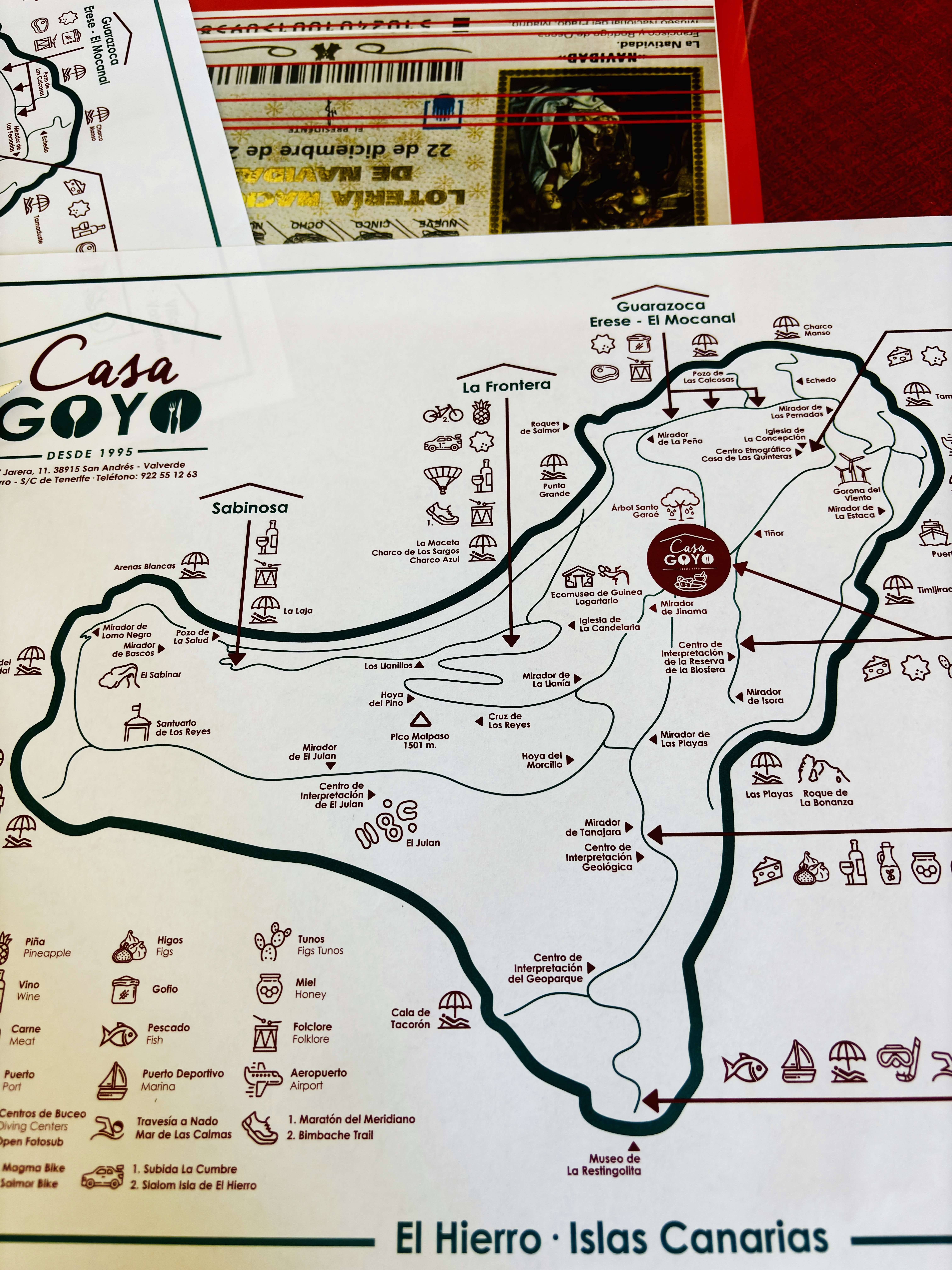 El Refugio to najbardziej oblegana knajpka w La Restinga. Kuchnia otwiera się o 13:00, zamyka o 17:00, a o 13:05 wszystkie stoliki są już dawno zajęte. El Refugio nie przyjmuje rezerwacji, ale za to tworzy listę, na którą można wpisać się już po otwarciu, by dostać stolik w drugiej lub trzeciej (jeśli będzie okazja) turze serwisu, więc ustawiają się do niej długie kolejki. Podają tu prawdopodobnie najlepszy grillowany ser Herreño na całej wyspie, super świeże ryby (La Restinga to wioska położona tuż nad Atlantykiem) i wszystko inne. Podczas dwóch podróży na El Hierro zdążyliśmy tu zjeść czterokrotnie i nie mamy dość. Krótkie godziny otwarcia i brak rezerwacji nie ułatwiają sprawy, ale posiłek w El Refugio, przy akompaniamencie powitań i okrzyków niestrudzonego Manolo, który dba o to, by każdy gość czuł się tu w pełni zaopiekowany, jest doświadczeniem unikalnym w skali wyspy. Być na El Hierro i nie zjeść w El Refugio to grzech. A na jednym ze zdjęć poniżej patronka ludzi morza, której 16 lipca każdego roku portowe miasteczko La Restinga składa hołd.