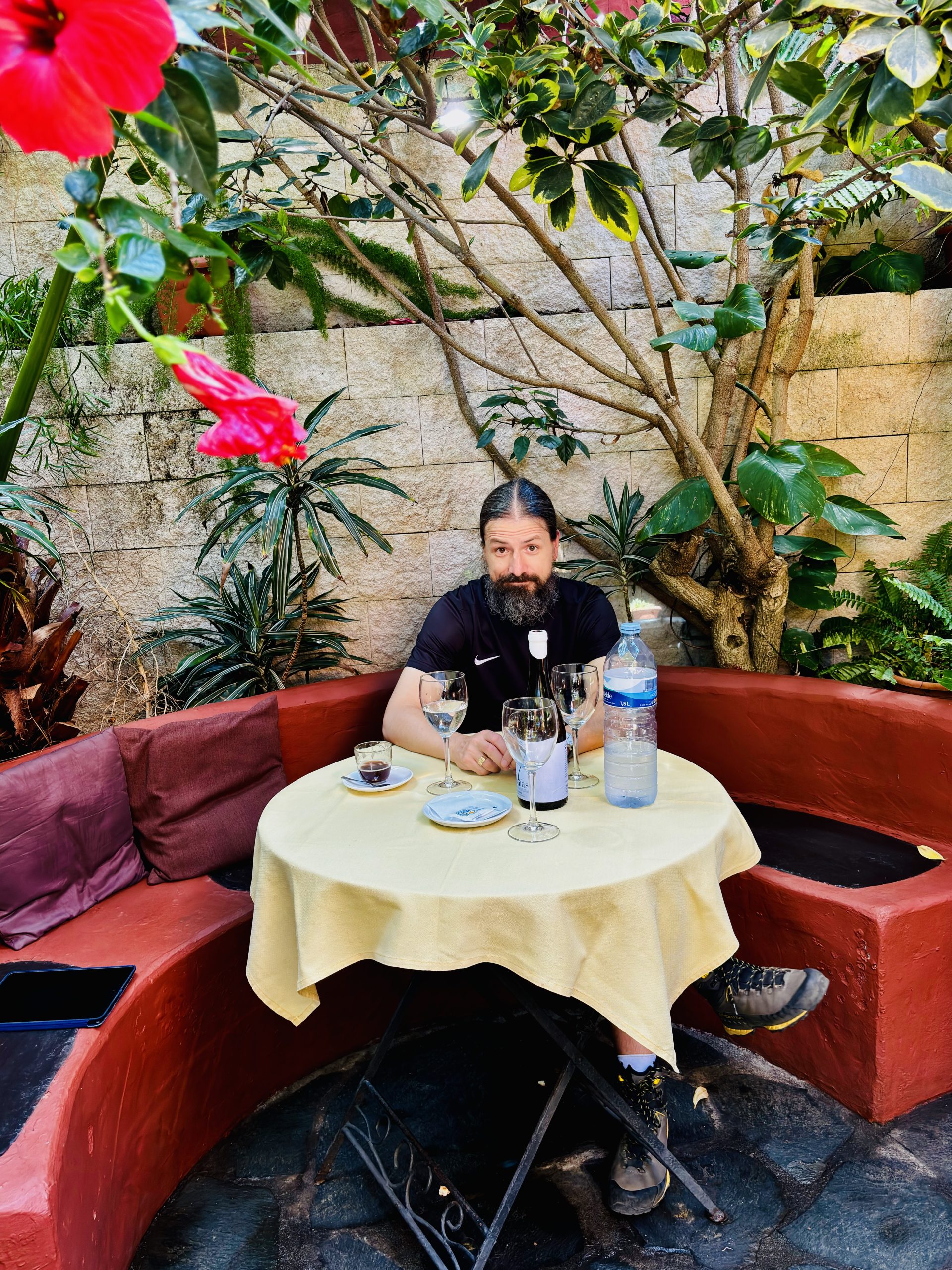 Co jeszcze o La Restinga? Może to: czekamy z kieliszkami wina w dłoniach na stolik w El Refugio, a tu nagle siedzący obok lokalsi z uśmiechem od ucha do ucha przynoszą nam krzesła. Przy 32+ zawsze lepiej posiedzieć!