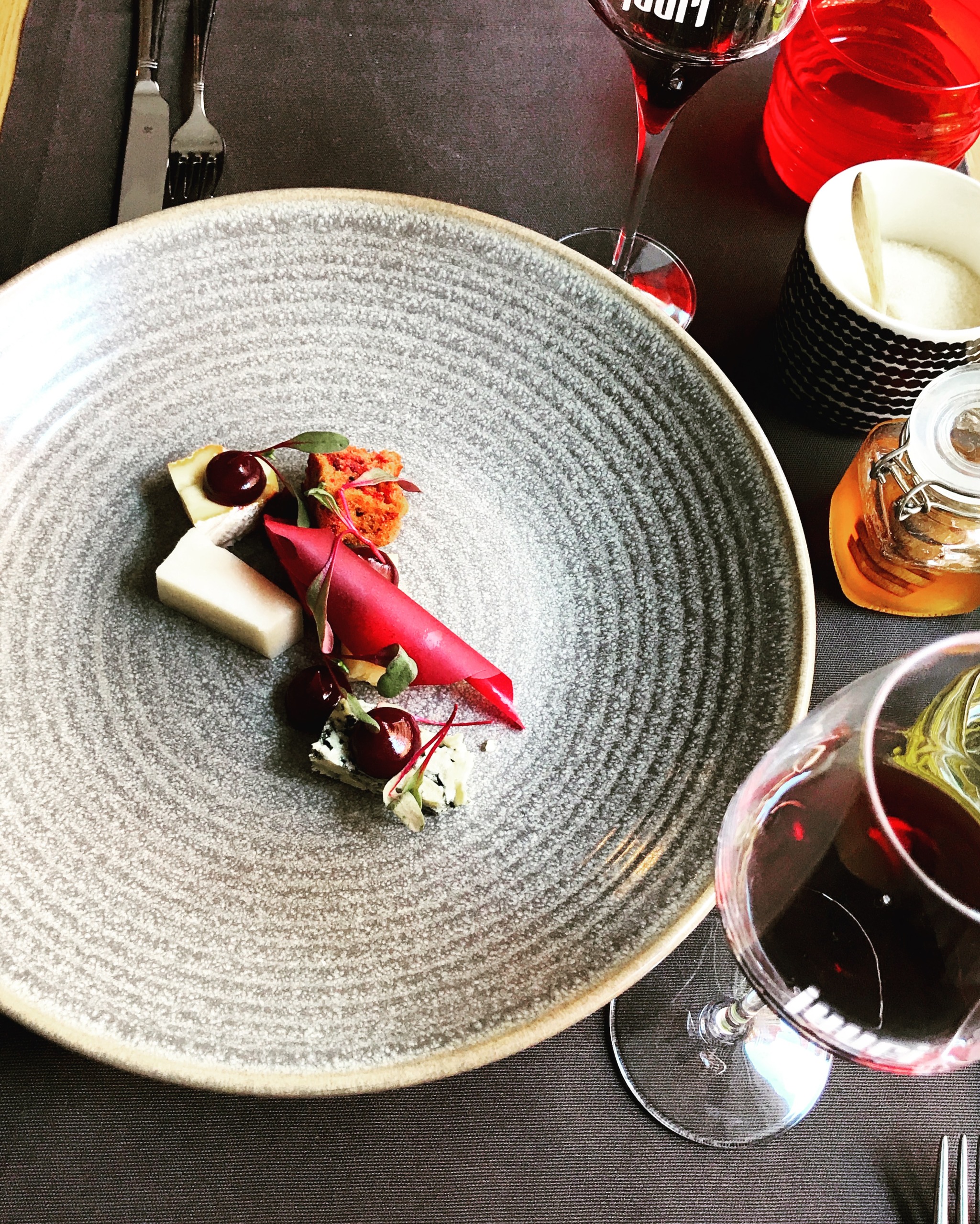 Deser: wytwarzane w Finlandii sery z surowego koziego mleka + camembert z burakiem i bezglutenowym piernikiem (9 EUR)