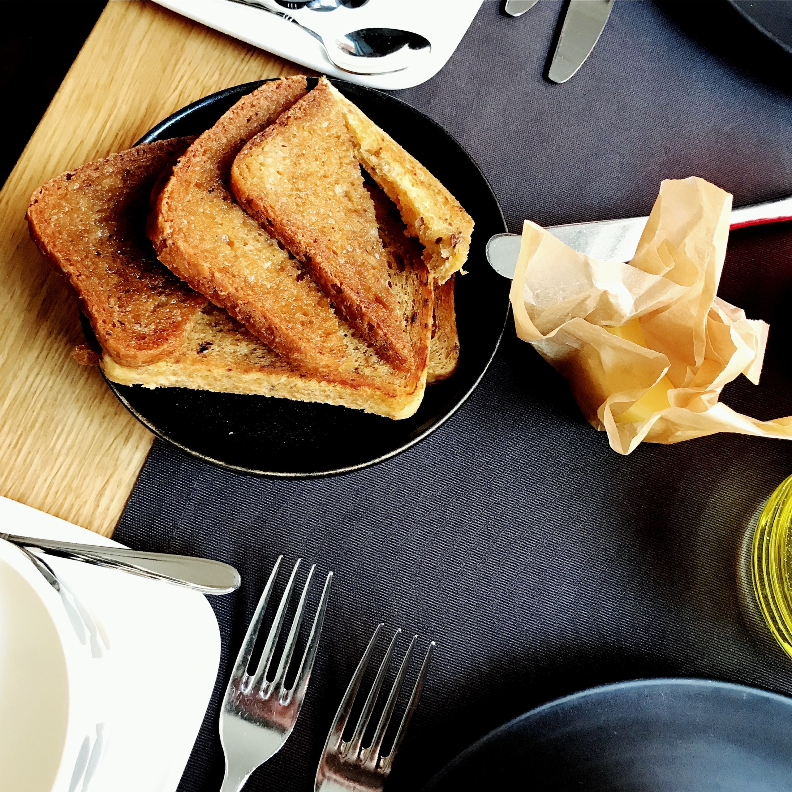 Zamówione danka poprzedziły amuse bouche i bezglutenowy chleb smażony na maśle, podany z dodatkowym aromatyzowanym ziołami masłem. Byliśmy głodni i zmarznięci, więc zjedliśmy pieczywo do ostatniego okruszka, choć było solidnie nasączone tłuszczem.