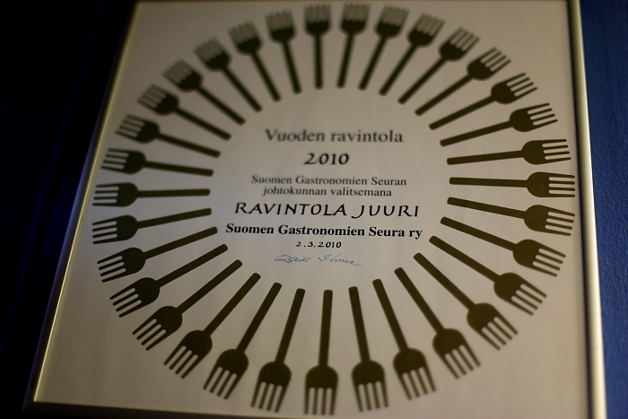 - W 2005 JUURI trafiła na listę 50 najlepszych fińskich restauracji, w 2010 zajęła na tej liście – póki co – najwyższą 8 pozycję