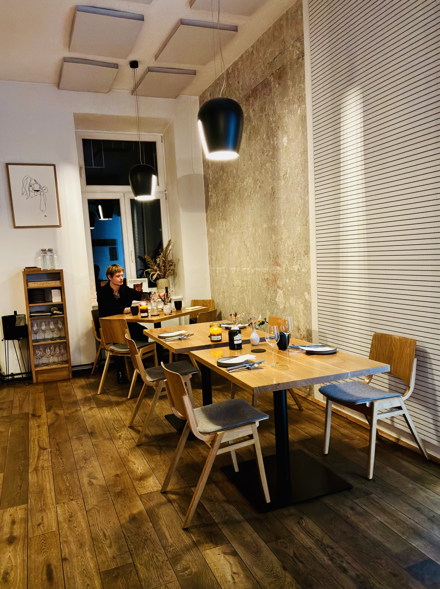 Biodynamiczne i organiczne wina odgrywają w MAST kluczową rolę, a sommelierzy-założyciele, Steve Breitzke i Matthias Pitra, mają tu wszystko, czego trzeba człowiekowi do szczęścia. Lokal zgrabnie łączy swobodny fine dining z niezobowiązującą formą bistro i autentycznie zachwycającą kartą win, która obejmuje ponad 1300 butelek (!). Na szczęście, cała karta win jest dostępna także online, dzięki czemu można przejrzeć ją wcześniej i na spokojnie wybrać przynajmniej shortlistę, by choć trochę ułatwić sobie wybór na miejscu. A wybierać naprawdę jest w czym! W Polsce tej jakości i tak transparentnego wine baru, z winami w równie dobrych cenach, nie doczekamy pewnie nigdy. Menu, pod wyraźnym nordyckim wpływem, bazuje na autentycznie lokalnych, świeżych, sezonowych składnikach, a minimalistyczne dania są dopracowane w każdym calu. Nie dostajesz tu prostych przekąsek, które byłyby tylko tłem dla tych wspaniałych win, ale pełnoprawne menu przygotowane przez zdolnego szefa kuchni, który naprawdę rozumie, na czym powinien polegać udany wine & dine.