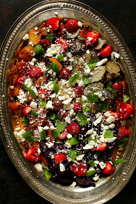 Pieczone buraki z truskawkami