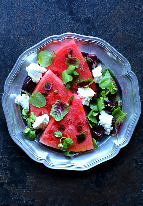 Sałatka z arbuzem i kozim serem.