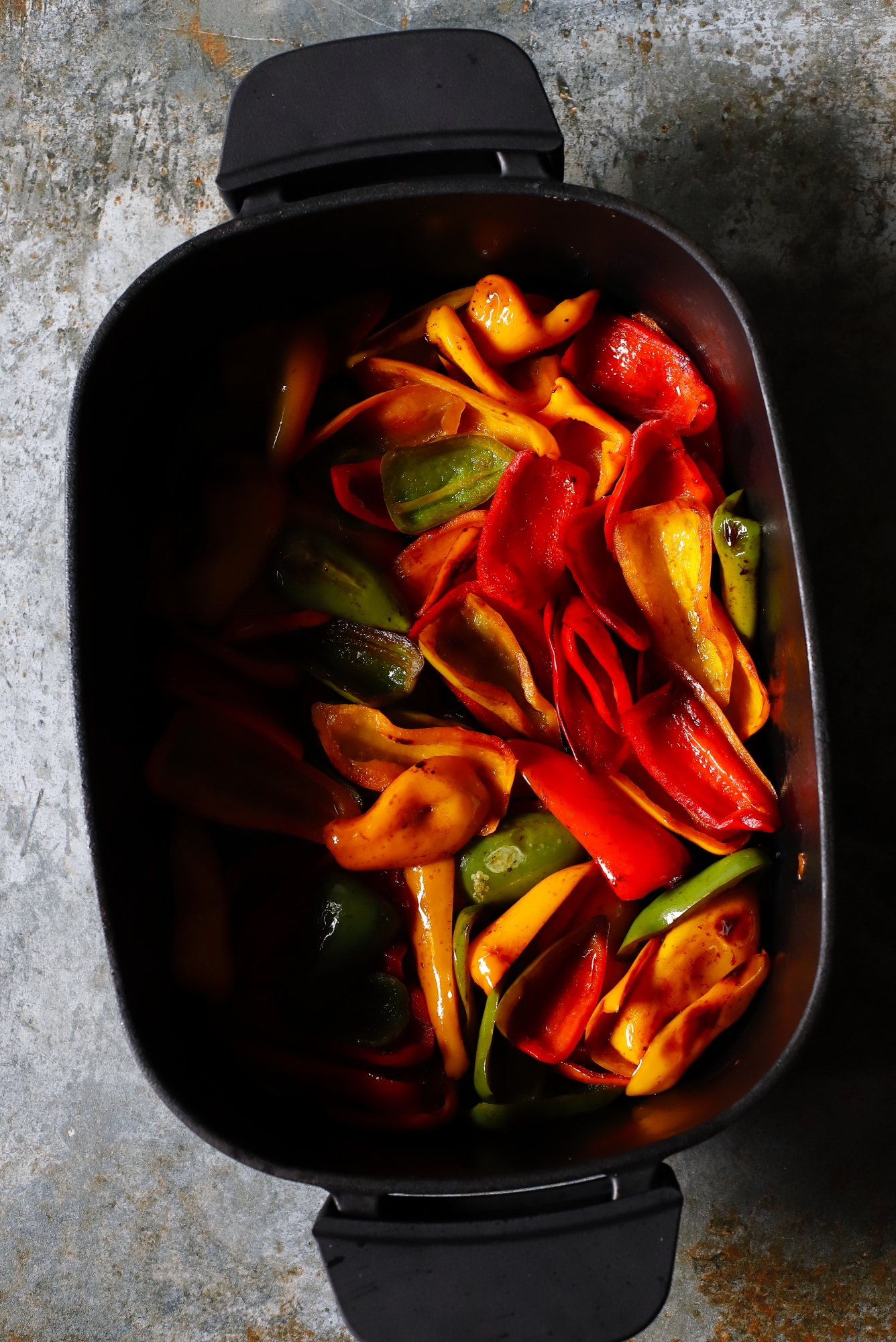Smażona papryka z bakłażanem – SKŁADNIKI na 4 porcje: