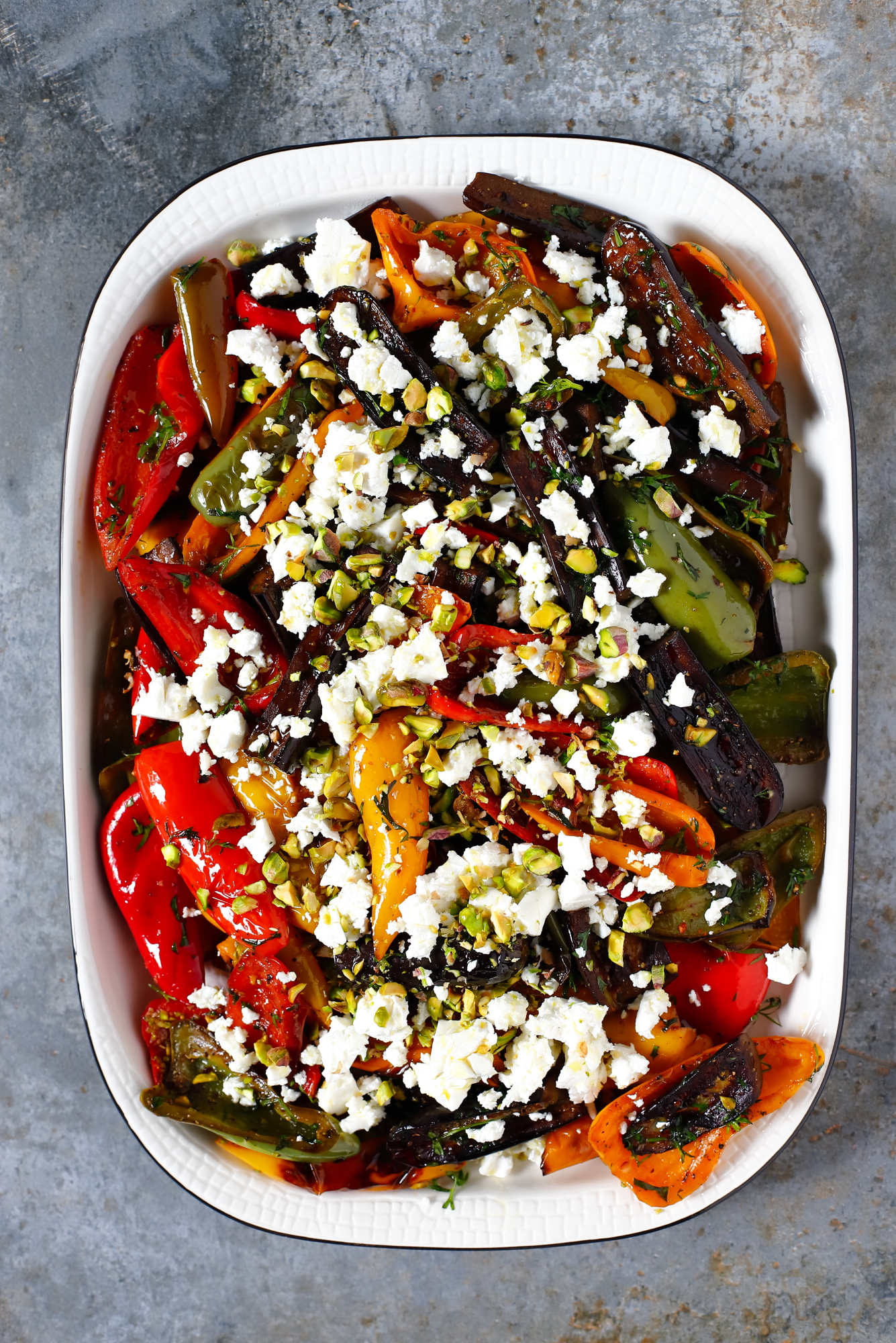 - Przed podaniem posyp pokruszoną fetą i posiekanymi pistacjami. Na koniec skrop oliwą.