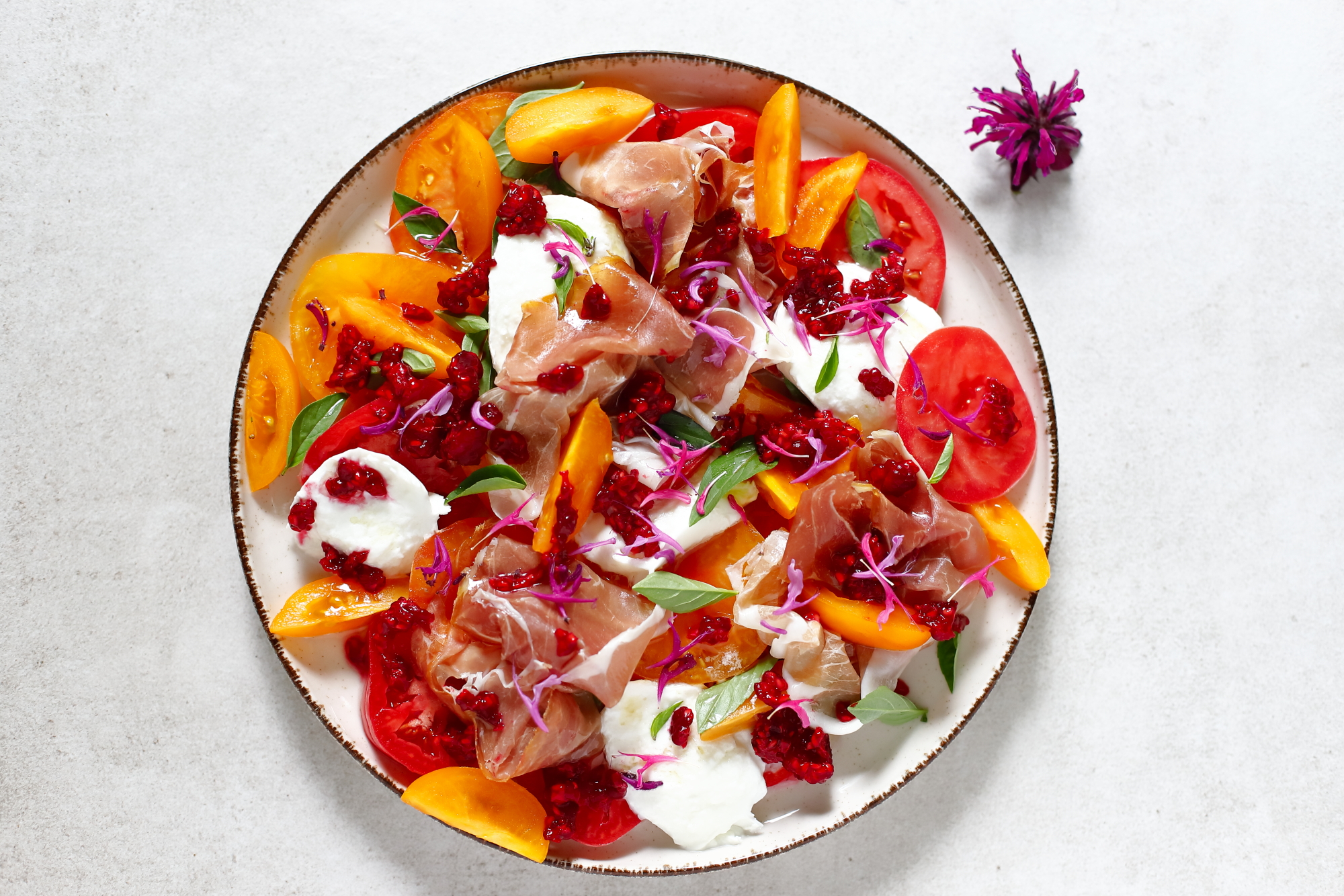 Sałatka figowa z brzoskwinią i prosciutto.
